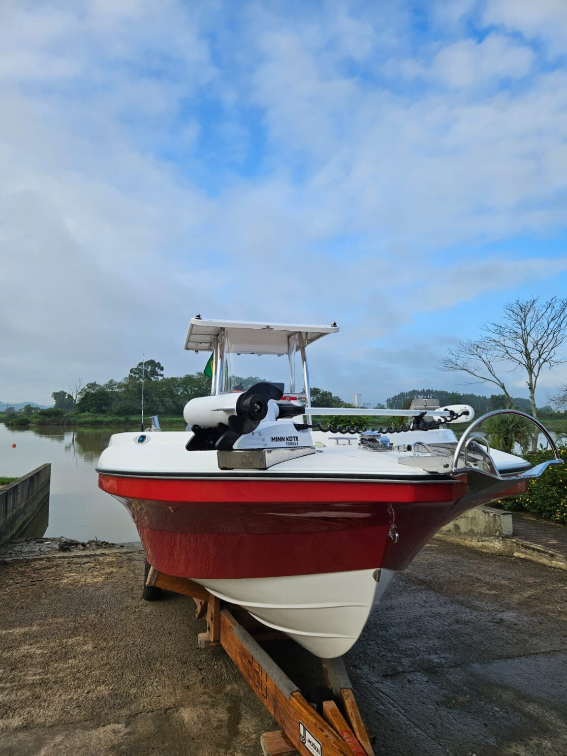 Estrutura: T-top de fibra + toldo de popa