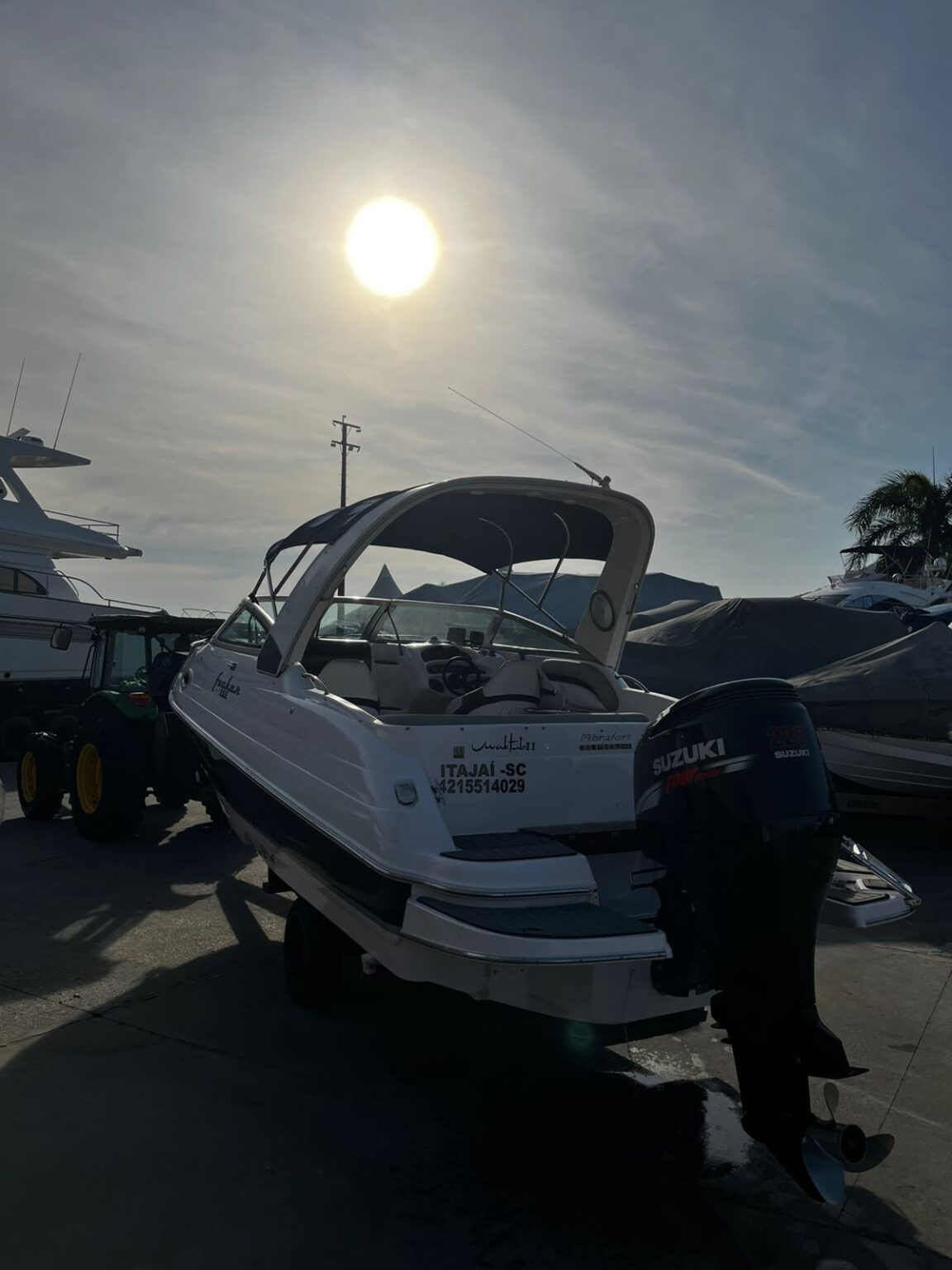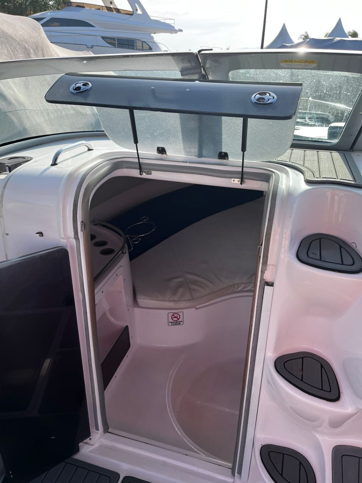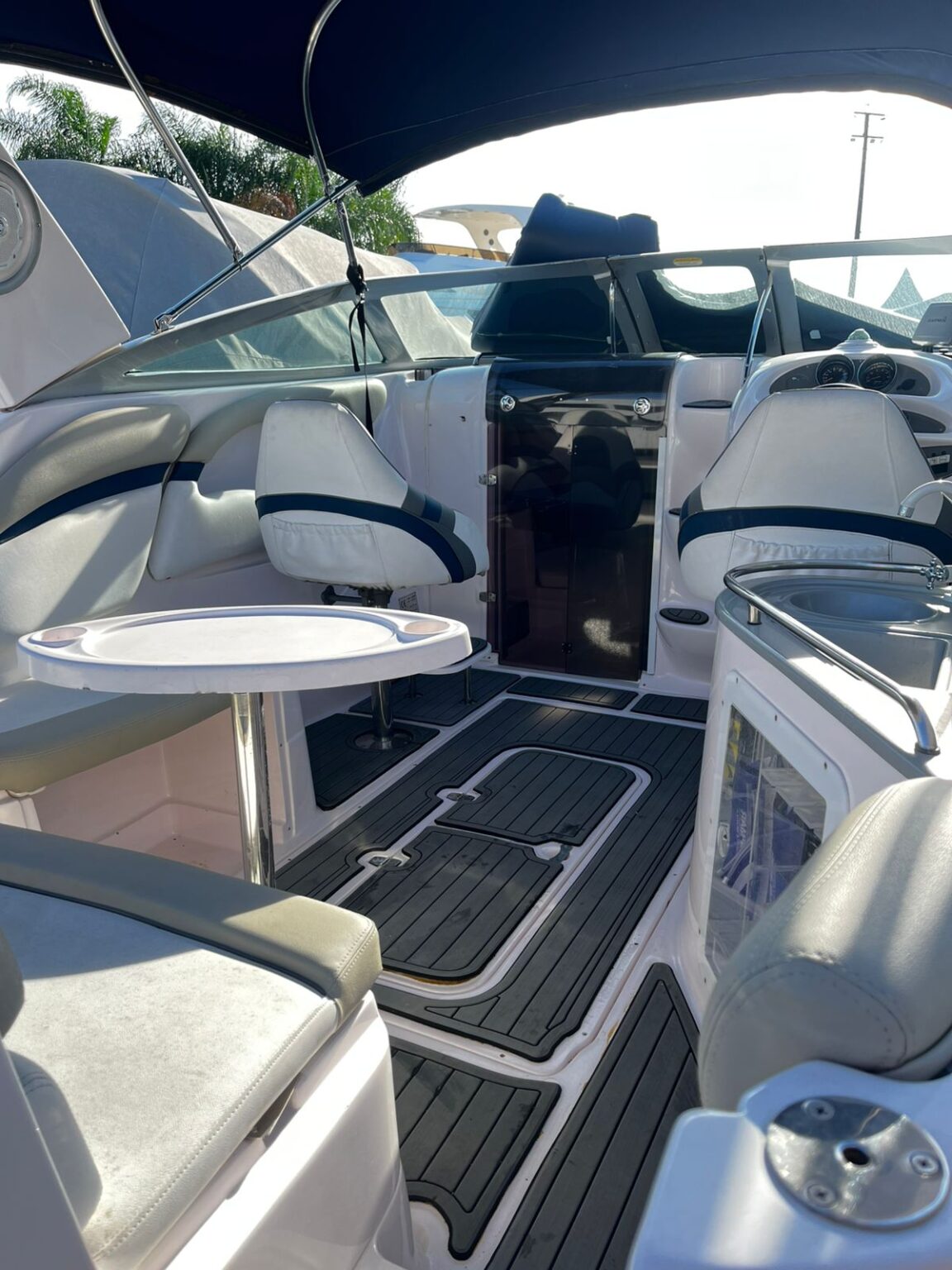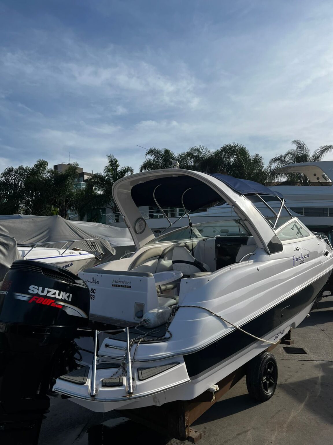 Estrutura: T-top de fibra + toldo de popa